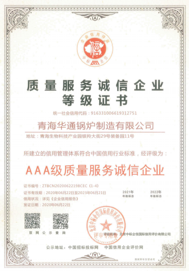 质量服务诚信企业等级证书